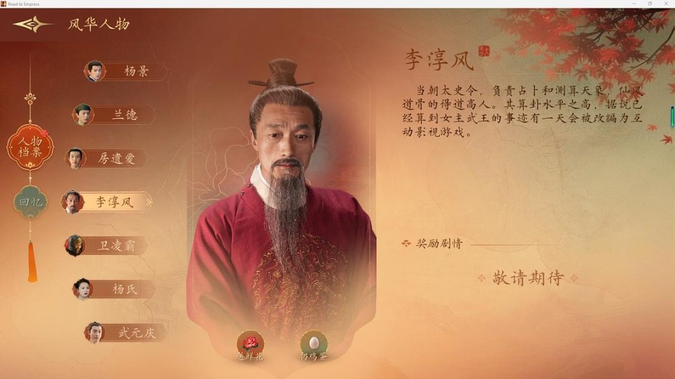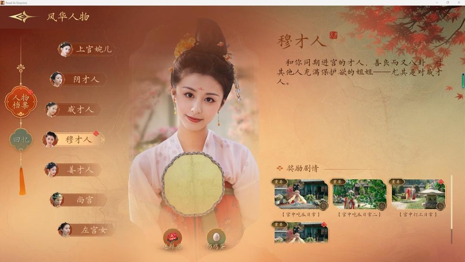 4,”风华人物“,本作的叫法,其实就是常规的档案室,资料馆,里面是真的有人物档案的,另外附加各种隐藏剧情,里面还有一个叫”回忆“的功能也是放各种隐藏剧情的,至于具体感受就正如我上面第三点说的一样,关于档案功能,按照惯例我后面会再展开来说的。