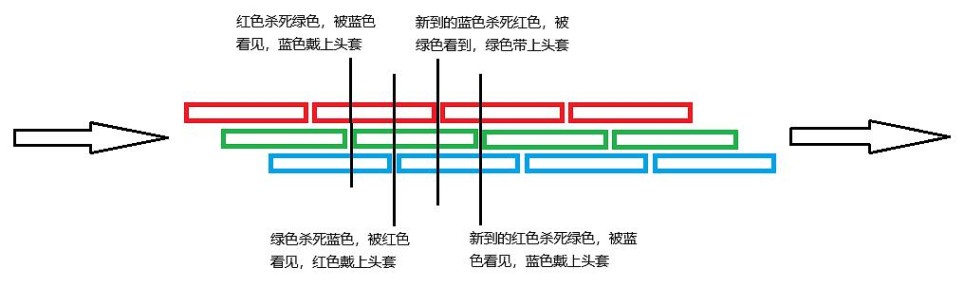 三款Jess是并排地、错开一格地向前演进,以三款Jess都有出现的场景为时间切面,每一款都会经历“在甲板杀死套头的自己”、“在楼上看到自己在甲板杀死套头的自己”、“自己套头后在甲板上被自己杀掉”这三个关键节点。三款之间在这个时点上是错开一格(三分之一)的,但每款Jess的主观时间线里,她所经历和所做的都有微妙的不同,这里就不多赘述了,具体可以看上面提及的那篇解析。每款死后又都会迎来新的一队人上船,然后永续下去。